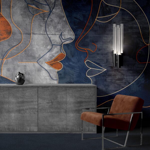 Modern Soyut Çizgisel Yüz Figürlü Duvar Kağıdı