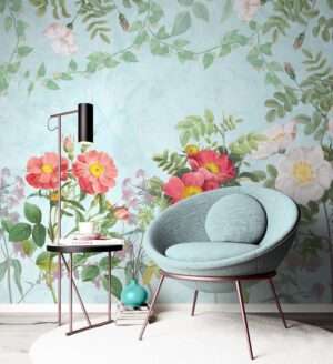 Açık Mavi Üzerine Çiçekli Vintage Duvar Kağıdı