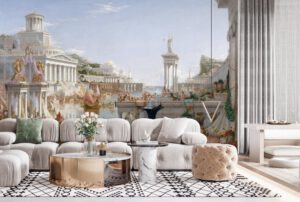 Antik Roma’nın görkemli şehirlerini ve tarihi zenginliğini yansıtan bu sanat eseri temalı duvar kağıdı, mekanlarınıza sofistike bir atmosfer kazandırır.