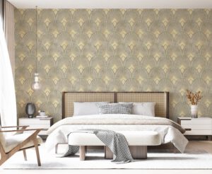 Bu zarif Art Deco tarzı gri ve altın duvar kağıdı, mekanınıza sofistike ve modern bir hava katar. Kolay uygulama için kendinden yapışkanlı seçenek veya geleneksel tutkal ile profesyonel kaplama seçeneği sunar. Özellikle yatak odası, salon ve otel dekorasyonu için idealdir. Yumuşak renk geçişleri ile sade ve lüks bir atmosfer oluşturur.