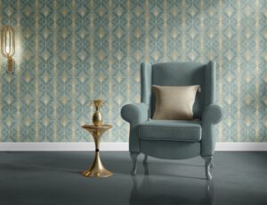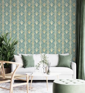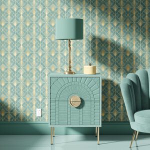 Art Deko Geometrik Desenli Altın Detaylı Duvar Kağıdı – Modern & Şık