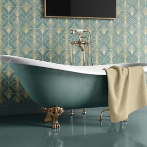 Bu şık Art Deco tarzı mavi ve altın duvar kağıdı, mekanınıza zarif bir atmosfer katmak için tasarlandı. Kendinden yapışkanlı seçeneği ile kolay uygulama veya geleneksel tutkal ile profesyonel kaplama imkanı sunar. Salon, oturma odası, yatak odası ve ofis gibi farklı alanlar için mükemmel bir tercihtir. Modern ve vintage dekorasyon stilleri ile uyum sağlar.