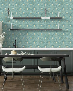 Art Deco Turkuaz Duvar Kağıdı için 1 değerlendirme