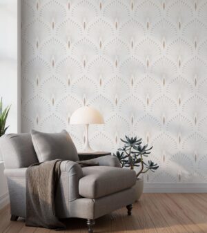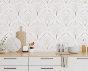 Art Deko Yelpaze Desenli Duvar Kağıdı – Bej ve Krem
