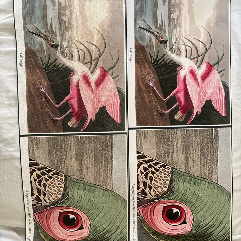 Renkleri görmek için numune aldım. Vintage baskı olduğundan hafif sarı tonlu, hoş bir örnek.