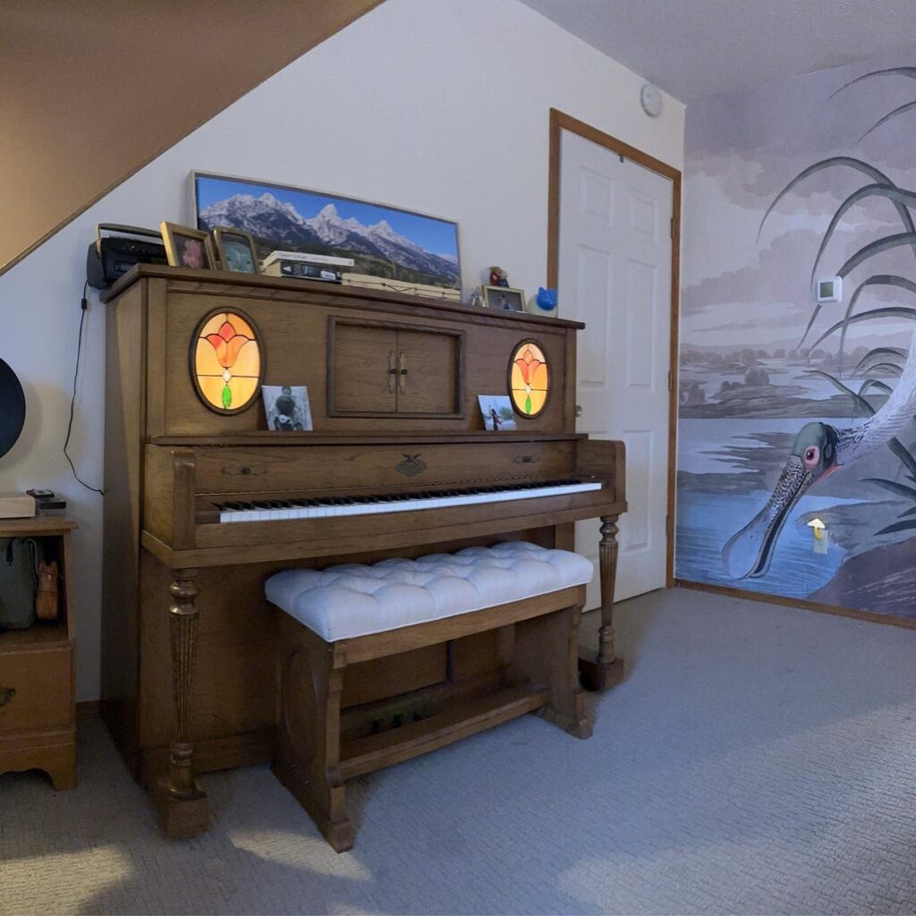 **Vintage estetik** Soluk pastel arka plan ve canlı kuş figürüyle zamanın ötesinde bir hava.