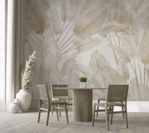 Bej Botanik Muz Yaprakları Desenli Duvar Kağıdı