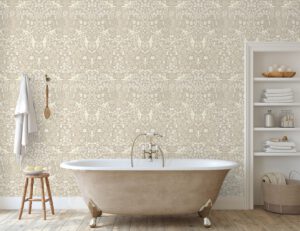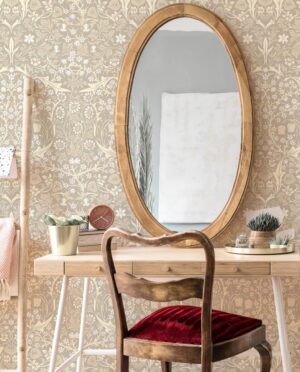 Zarif çiçek desenleri ve bej tonlarıyla hazırlanan bu vintage duvar kağıdı, evinize klasik ve sıcak bir hava katar. Antre, salon veya oturma odasında nostaljik bir atmosfer yaratmak isteyenler için idealdir. Kendinden yapışkanlı ya da tutkallı uygulama alternatifleriyle sunulmaktadır.