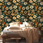 Koyu Çiçek Desenli Duvar Kağıtları