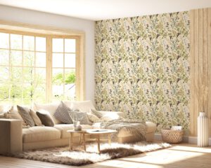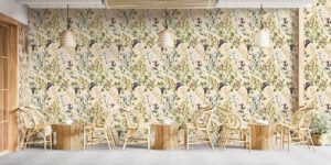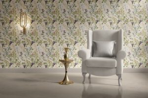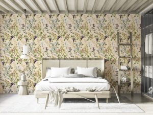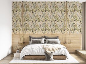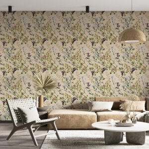 Bej arka plan üzerine işlenmiş zarif dallar ve çiçek detaylarıyla bu duvar kağıdı, mekâna doğadan ilham alan sofistike bir hava katar. Lavanta, yeşil, mavi ve pembe tonlarının dengeli kullanımıyla özellikle yatak odası, butik otel odası, dinlenme köşeleri ve şık iç mekanlar için idealdir. Ürün, kendinden yapışkanlı ve tutkal ile uygulanan geleneksel seçeneklerle sunulur.