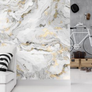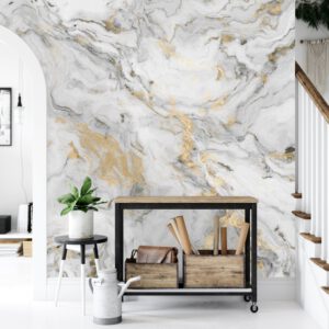 Beyaz Mermer ve Altın Damarlı Duvar Kağıdı