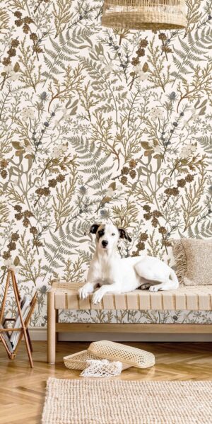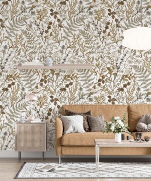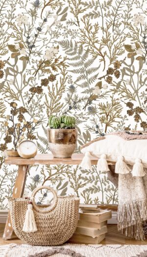 Bohça Desenli Eğrelti Otu Botanik Duvar Kağıdı