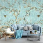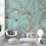 Çiçekli ve Kuşlu Çocuk Odası Duvar Kağıdı