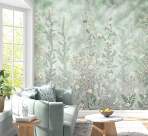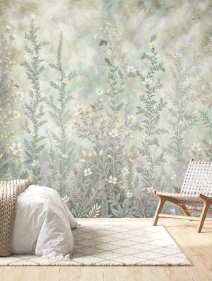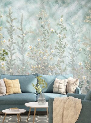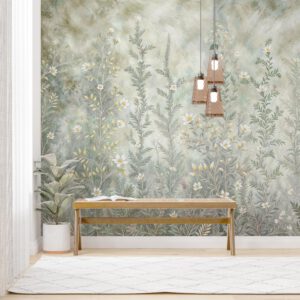 Bu zarif botanik çiçek duvar kağıdı, doğanın huzur verici dokusunu evinize getiriyor. Yumuşak yeşillikler ve papatyalarla bezenmiş, yaşam alanlarınıza ferahlık katacak. Kendinden yapışkanlı veya geleneksel malzeme seçenekleriyle yatak odası, çocuk odası ve oturma odası gibi farklı alanlarda kullanılabilir.