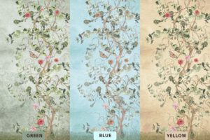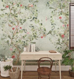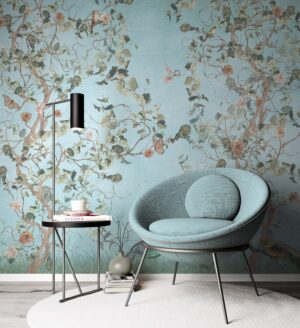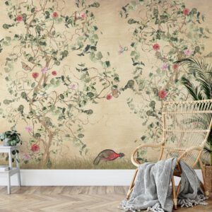 Zarif Chinoiserie Tarzı Ağaç ve Kuş Desenli Duvar Kağıdı