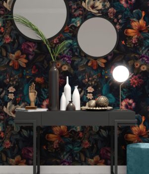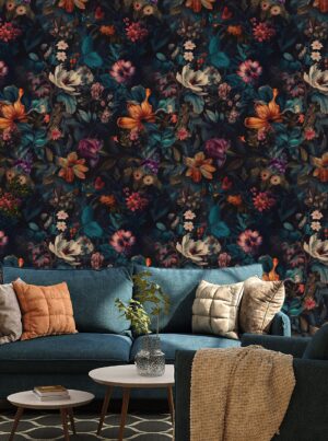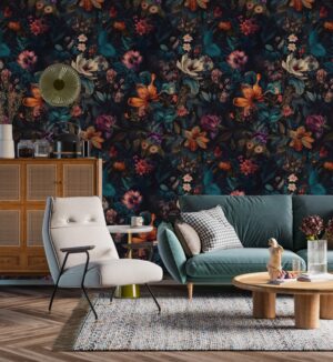 Bu çarpıcı duvar kağıdı, koyu zemin üzerinde kontrast yaratan canlı çiçek motifleriyle mekâna estetik ve sıcak bir hava katar. Modern veya vintage dekorasyon stilleriyle kolayca uyum sağlar. Salonlar, oturma alanları, okuma köşeleri ve yaratıcı iç mekân projeleri için mükemmeldir. Kendinden yapışkanlı ve klasik yapıştırma alternatifleriyle sunulur.