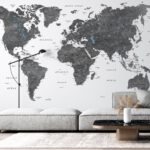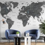Siyah Gri Minimalist Dünya Haritası Duvar Kağıdı
