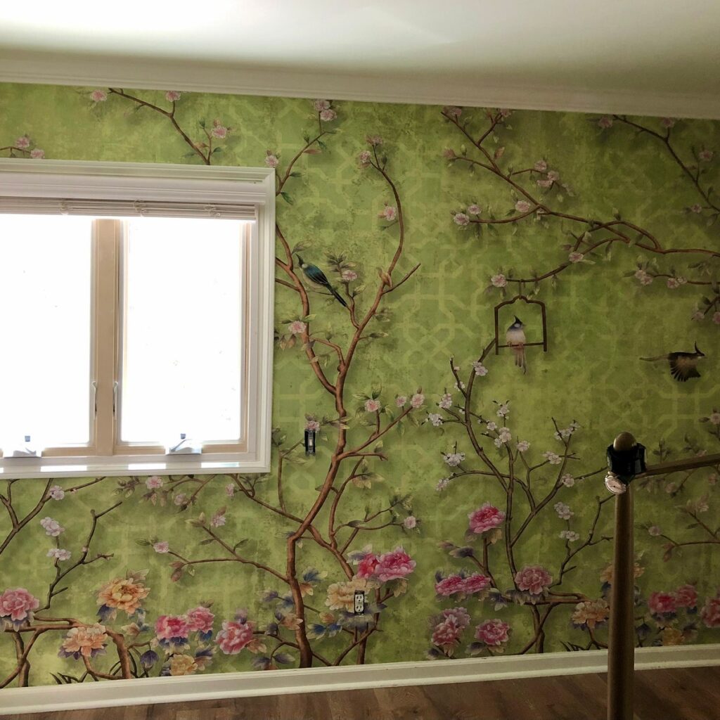 Çiçekli ve Kuşlu Yeşil Duvar Kağıdı için 8 değerlendirme