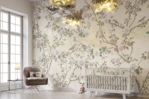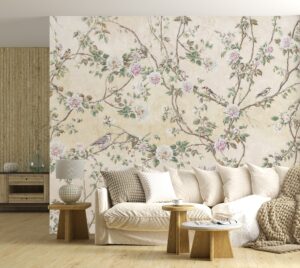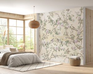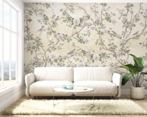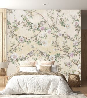 Mekanlarınıza dingin bir zarafet ve klasik bir hava katın. Bu özel tasarım, Çin sanatından ilham alan krem renkli duvar kağıdı; zarif dallar üzerinde yer alan kuş figürleri, büyük açmış çiçekler ve narin kelebek motifleriyle huzurlu bir atmosfer sunar. Krem ve bej tonlarındaki zemin üzerine işlenmiş pastel pembe, beyaz ve yeşil tonlarındaki bu desenler, odanıza aydınlık, ferah ve sofistike bir görünüm kazandırır. Özellikle bebek odası, çocuk odası veya yatak odası gibi dinlenme alanları için ideal olan bu tasarım, sakin ve huzurlu bir ortam yaratmanıza yardımcı olur.