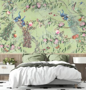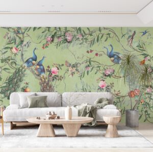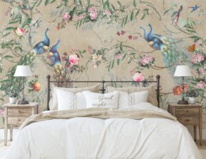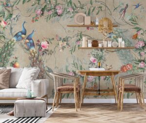 Mekanlarınıza zarafet ve sanatsal bir derinlik katacak olan bu Çin Sanatı Esintili Tavus Kuşlu Vintage Duvar Kağıdı ile tanışın. Klasik Çin sanatından ilham alan bu tasarım, göz alıcı tavus kuşları, canlı çiçekler, zarif dallar ve minik kuş figürleriyle bezenmiştir. Vintage esintili renk paleti ve detay zenginliği, duvarlarınızı adeta bir sanat eserine dönüştürür.