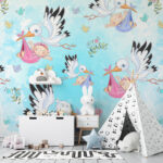 Leylek ve Bebek Temalı Duvar Kağıdı