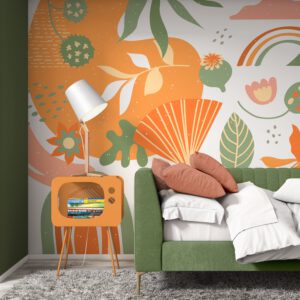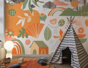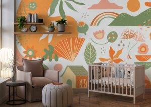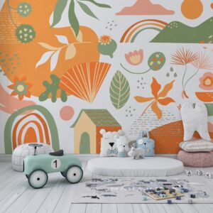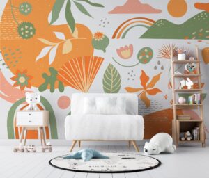 Çocuk Odası İçin Renkli Bitkisel ve Doğa Temalı Duvar Kağıdı