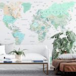 Pastel Tonlarda Dünya Haritası Duvar Kağıdı