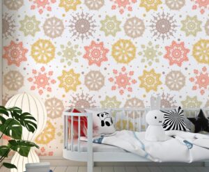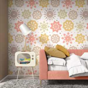 Bu mandala desenli duvar kağıdı, mekanınıza zarif bir dokunuş katmak için mükemmeldir. Kendinden yapışkanlı ya da geleneksel seçenekleriyle yatak odası, oturma odası veya ofis gibi mekanlarda kullanılabilir. Canlı renkleriyle modern bir dekorasyon sağlar.