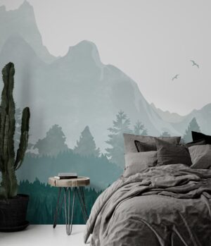 Bu dağ manzaralı duvar kağıdı, yatak odanıza sakin ve doğal bir atmosfer katar. Doğanın huzur veren etkisini evinize taşıyın.