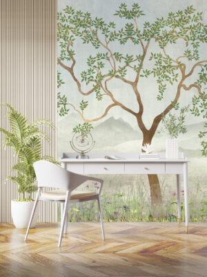 Bu doğal ağaç deseni duvar kağıdı, yatak odası veya oturma odası gibi rahatlatıcı alanlar için mükemmel bir seçenektir. Doğa temalı bu tasarım, iç mekanınıza huzurlu ve doğal bir atmosfer katacaktır. Kendinden yapışkanlı ya da geleneksel tutkal ile uygulanabilir.