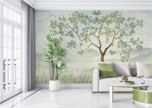 Kuş ve Çiçek Desenli Duvar Kağıdı