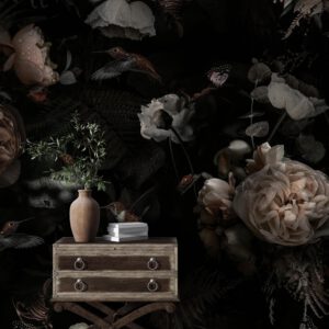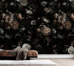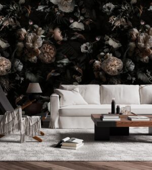 Dramatik Koyu Çiçek Desenli Duvar Kağıdı