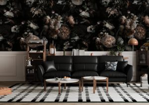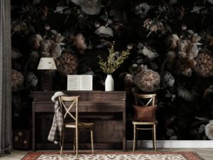 Koyu Çiçek Desenli Duvar Kağıtları