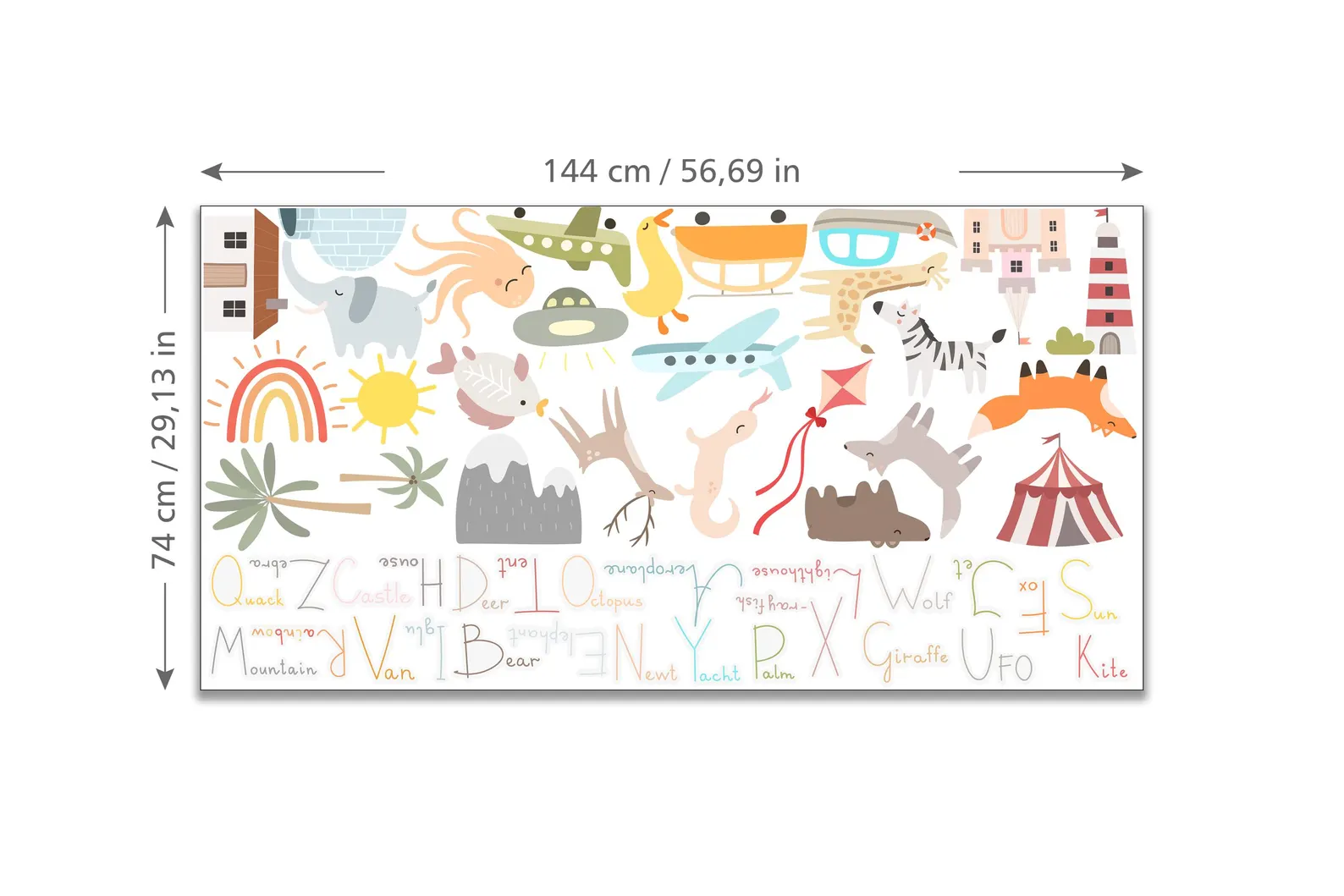 A’dan Z’ye her harfin yanında o harfle başlayan sevimli bir hayvan veya nesne çiziminin yer aldığı bu set, çocukların harfleri ve ilk İngilizce kelimeleri görsel hafıza yoluyla kolayca öğrenmesini sağlar. Modern tasarımı ve soft renkleri ile her odaya şıklık katar.