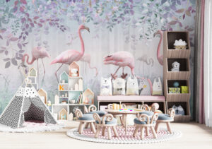 Bu flamingo ve çiçekli duvar kağıdı, çocuk odalarına neşeli ve modern bir atmosfer katar. Pembe flamingolar ve pastel tonlarındaki çiçeklerle çocuklar için mükemmel bir dekorasyon seçeneğidir. Kendinden yapışkanlı veya geleneksel tutkal sürülerek uygulanabilir. Çocuk odası, oyun odası veya yatak odası için ideal bir duvar kaplamasıdır.