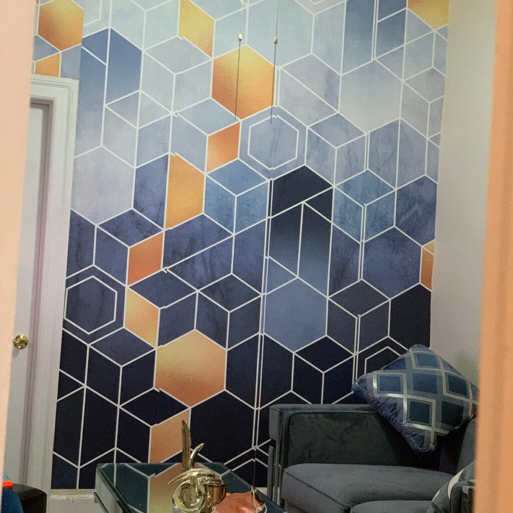 Geometrik Altın ve Mavi Duvar Kağıdı için 1 değerlendirme