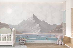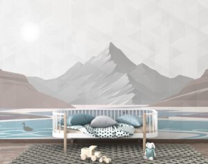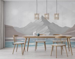 Geometrik dağ manzaralı duvar kağıdı, şık ve modern bir atmosfer yaratır. Modern ve minimalist bir tarzda tasarlanmış bu duvar kağıdı, yatak odası ya da oturma odası için mükemmel bir seçenek olacaktır.