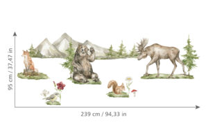 Bu görkemli yaban hayatı seti ile çocuk odalarına eğitici ve ilham verici bir ortam yaratın, salonunuza veya çalışma odanıza sofistike bir doğa teması ekleyin. Her bir parçayı dilediğiniz gibi düzenleyerek kendi özgün dağ ve orman manzaranızı oluşturun!