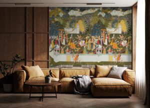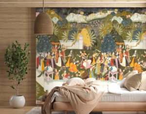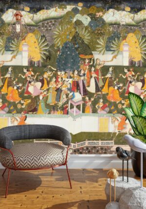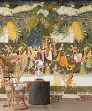 Zengin detaylara sahip bu Hint minyatür sanatı duvar kağıdı, mekânınıza tarihi ve kültürel bir atmosfer kazandırır. Canlı renkleri ve hareketli sahneleriyle dikkat çeken bu tasarım, özellikle etnik ve klasik dekorasyon stilleriyle uyumludur. Ürün, tutkal ile uygulanan geleneksel versiyonun yanı sıra kolay uygulanabilen kendinden yapışkanlı seçenekle de sunulmaktadır. Salon, oturma odası, çalışma alanı ve sanat köşeleri için idealdir.