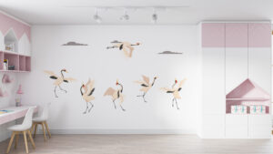 Japon kültüründe şans, uzun ömür ve sadakatin sembolü olan turnaların zarif dansını odalarınıza taşıyın. Çocukların hayal gücünü geliştiren bu eğitici ve dekoratif tasarımlarla yaşam alanlarınıza estetik bir değer katın.