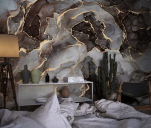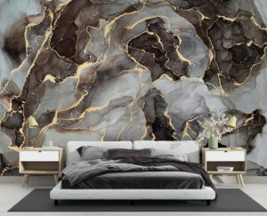 Kahverengi ve altın damarlarıyla bu şık mermer deseni, yatak odanızı lüks bir atmosferle doldurur ve zarif bir görünüm sağlar.