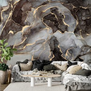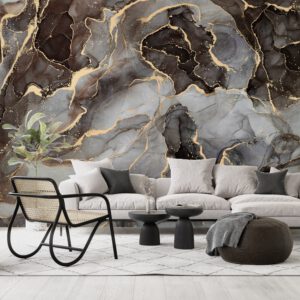 Kahverengi ve Altın Damarlarıyla Mermer Desenli Duvar Kağıdı