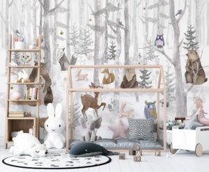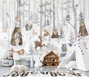 Bu büyüleyici karla kaplı orman temalı duvar kağıdı, çocuk odaları için mükemmel bir seçenek. Ayı, geyik, tavşanlar ve kuşlarla dolu bu sevimli tasarım, odanıza huzur ve doğanın taptaze havasını katacak. Kendinden yapışkanlı veya geleneksel seçenekler ile kolayca uygulanabilir.