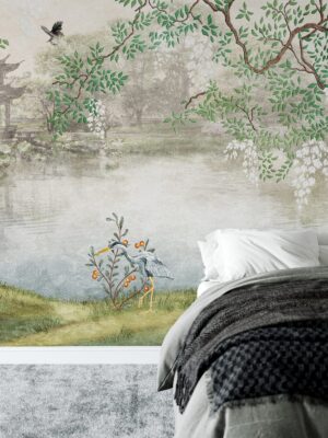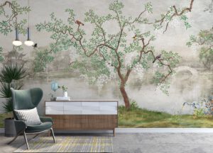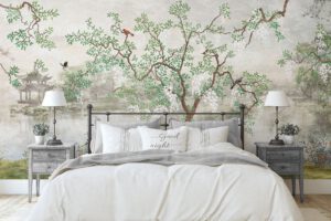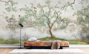 Bu kiraz çiçeği ve kuşlar temalı duvar kağıdı, geleneksel bir köprü manzarası ile doğal bir atmosfer yaratır. Doğayla iç içe bir yaşam alanı oluşturmak isteyenler için mükemmel bir seçenek olan bu duvar tasarımı, odanıza huzurlu ve zarif bir hava katar. Kendinden yapışkanlı veya geleneksel tutkal ile uygulanabilir. Bu tasarım, oturma odası, yatak odası veya doğa temalı mekanlar için idealdir.