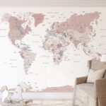 Minimalist Toz Pembe Dünya Haritası Duvar Kağıdı