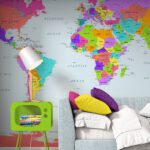 Suluboya Efektli Çok Renkli Dünya Haritası Duvar Kağıdı
