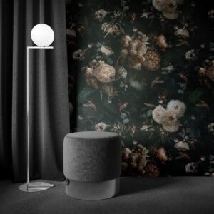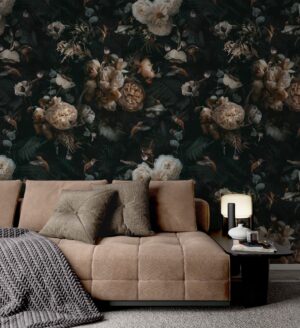 Bu koyu çiçek desenli duvar kağıdı, mekanlarınıza zarif ve lüks bir atmosfer katar. Salon, yatak odası veya giyinme odası gibi şık dekorasyon isteyen alanlar için mükemmel bir seçimdir. Kendinden yapışkanlı veya geleneksel tutkal ile uygulama seçenekleri mevcuttur.