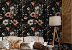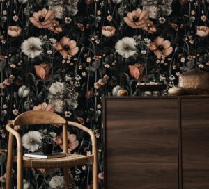 Koyu Çiçek Desenli Duvar Kağıtları