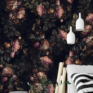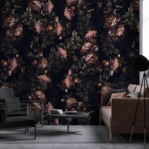 Koyu Çiçek Desenli Duvar Kağıtları