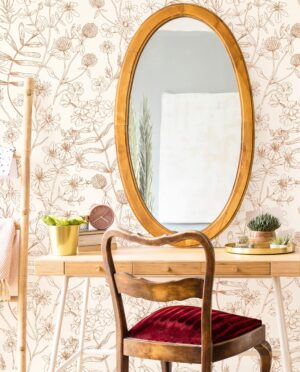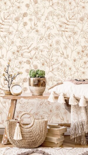 Oturma odanızda huzurlu bir köşe, yatak odanızda sakin bir atmosfer veya çalışma alanınızda ilham verici bir dokunuş yaratmak için ideal olan bu natürel ve zarif çiçekli duvar kağıdı, evinize sıcaklık ve stil katacaktır.